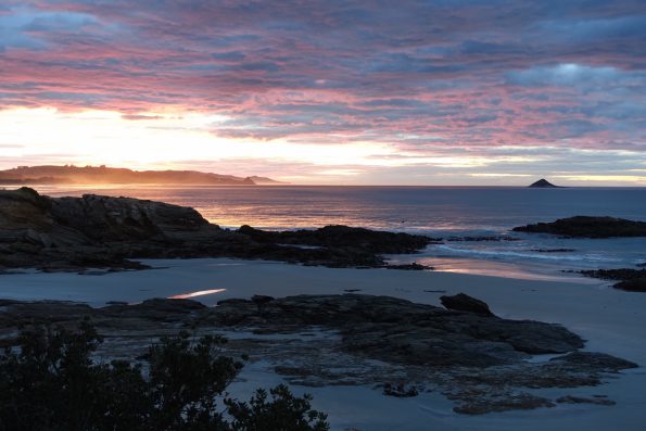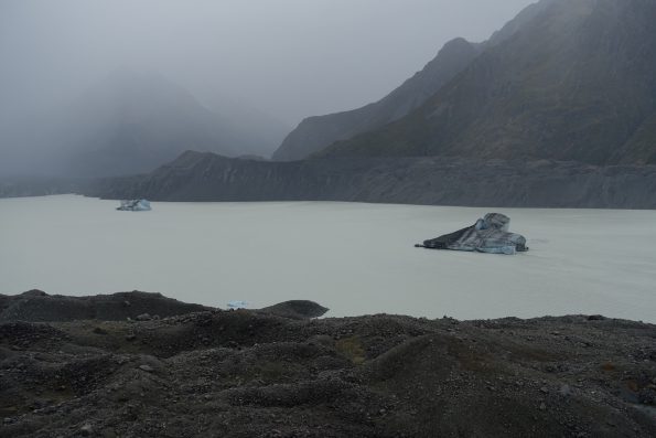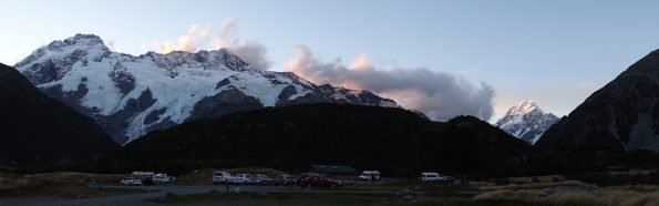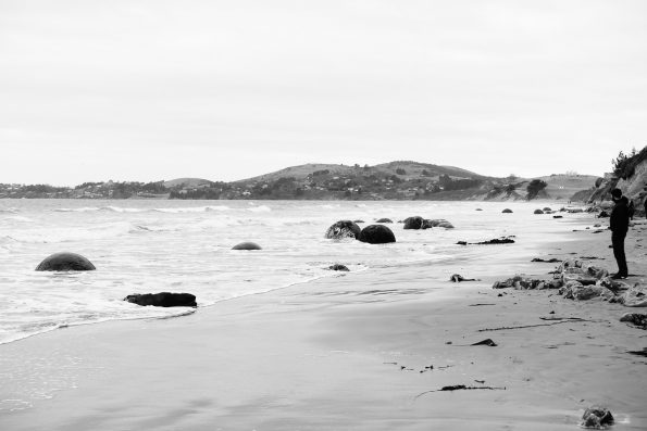 Am nächsten Tag geht es nach dem Frühstück zu dem Fluss Tekapo + Pukati. Auf dem Weg machen wir an verschiedenen Aussichtspunkten Halt und knipsen Bilder… Alleine sind wir dabei nicht, wir haben stets das Gefühl das ein Touri-Bus nach den anderen an uns vorbei hetzt. Am Mount Cook (den höchsten Berg des Landes) angekommen sichern wir uns einen schönen Stellplatz mit Aussicht zum Berg. Wir trinken einen Kaffee, die Sonne scheint und die schneebedeckte Spitze strahlt herab… Leider nicht lange, denn am Abend ziehen dunkle Wolken auf und es gibt den ein- oder anderen Schauer. In den Regenpausen bestaunen wir den Sternenhimmel. Dieser ist hier so klar und mit unzähligen Sternen gefüllt… der pure Wahnsinn. Am nächsten Morgen schüttet es leider immer noch wie aus Kannen und unsere Wanderung fällt sprichwörtlich ins Wasser. Stattdessen schauen wir uns das Sir Ed Hillary Museum an. 1948 bestieg er den Mount Cook in den Vorbereitungen für den Mount Everest, den er als erster 1953 bestieg. Im Anschluss fahren wir zum Tasman Gletscher und seinem See, indem riesige Eisberge schwimmen und lauschen dem Knacken der Eisstücke. Wir verlassen die Alpen und es geht gen Süden vorbei an unzähligen Staudämmen bis an die Ostküste, wo wir bei Riesenmurmeln am Pazifikstrand, den Moeraki Boulders, einen Stopp machen um uns diese Handwerkskunst der Natur aus nächster Nähe zu betrachten. Die grauen Steinkugeln liegen am Strand verstreut bis ins Meer hinein. Die größten haben einen Durchmesser von über zwei Metern. Sie sind geädert wie Schildkrötenrücken und werden deshalb auch Schildkrötensteine genannt. Manche sind aufgebrochen und zeigen ein gelb-grau zerklüftetes Inneres. Kurz bevor die Sonne im Meer versinkt haben wir noch ein Date mit ganz besonderen Kollegen. Wir machen einen ruhigen Strand ausfindig, wo man sehr gut Gelbaugenpinguine (einer der seltensten Pinguine der Welt) beobachten kann. Wir legen uns also auf die Lauer und siehe da, wie aus dem Nichts kommen die kleinen Torpedos durchs Wasser auf den Strand zu geschossen, richten sich auf und watscheln ganz relaxt den Strand entlang – ein schönes Schauspiel.