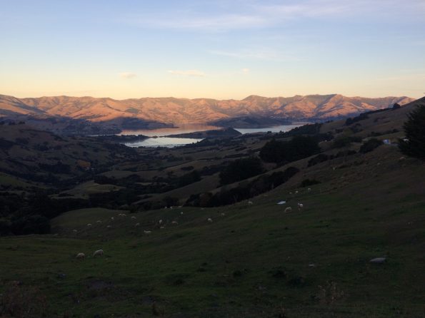 15 Uhr landen wir in Christchurch/ Neuseeland bei zarten 15 Grad. Wir erledigen problemlos die Einreiseformalitäten, lassen wieder unser Gepäck beschnüffeln und brauchen erst einmal einen Kaffee. Danach geht es mit dem Bus zur unserer Airbnb-Gastgeberin Ann. Ann ist aus Malaysia und wohnt seit acht Jahren auf der Südinsel. Sie hat vier Söhne, ist alleinerziehend und ihr Jüngster wohnt noch mit im Haus. Sie begrüßt uns herzlich, zeigt uns ihr Haus und unser Zimmer – ein WOW Effekt erhellt den Raum, schön eingerichtet, lichtdurchflutet, mit Blick in den Garten der sich in satten Herbstfarben zeigt. Bei einer heißen Schokolade lernt man sich näher kennen und Ann horcht uns aus, was wir über Neuseeland – „Land der weißen langen Wolke“ wissen und geplant haben. Rasch sitzen wir mit Kartenmaterial am Tisch und sie gibt uns noch ein paar zusätzliche Tipps. Im Hintergrund bereitet ihr Sohn das Kaminfeuer auf und in wenigen Minuten wird es richtig heimelig. Für das Abendessen wollen wir gar nicht mehr vor die Tür und bestellen Pizza. Im Anschluss macht es uns Ann am Kamin gemütlich. Wir schreiben unsere Gedanken zusammen und fallen spät ins Bett. Zur Überraschung hat uns Ann Heizdecken ins Bett gelegt – hm, ehrlich… Ja verdammt, wir haben sie genutzt 🙂 . Am Morgen empfängt sie uns mit einen umfangreichen Frühstück (australisch = Toast, Oatmeal – Getreidebrei, malaysisch = Reis mit Hühnchen, dazu Ingwer und Chili). Wir kommen aus den schlemmen nicht mehr raus. Um 10 Uhr laufen wir kugelrund zur Camper-Vermietung, erledigen den Schreibkram, fahren zurück zu Ann um die Rucksäcke abzuholen und um „tschüss“ zu sagen, aber es fällt uns bei dieser liebevollen Person nicht einfach. So sitzen wir bei Kaffee & frischen Cookies zusammen und reden, bis der Blick auf die Uhr fällt – wir müssen. Wir bedanken uns bei Ann für diese herzliche Gastfreundschaft und sagen „bis bald“. Wir fahren noch rasch in den Supermarkt um die Ecke und decken uns mit dem Nötigsten ein. Danach haben wir das kleine Örtchen Akaroa als Ziel. Nach der Ankunft auf dem Platz am See richten wir uns im Camper erst einmal ein, essen Abendbrot und fallen beizeiten ins neue Bett. Am nächsten Morgen wird ausgiebig gefrühstückt und die Kleinstadt unter die Lupe genommen. Claudi findet dabei einen warmen Schal aus Merino-, Possumwolle – „der ist soooo kuschelig“ 🙂 . Wir fahren auf einen Berg, genießen die Aussicht über den See und die herbstliche Landschaft.
