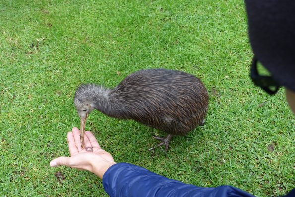 Der Kapitän begrüßt uns an Bord und informiert über einen kräftigen Seegang auf dem offenen Meer und das es zu 6 Meter hohen Wellen kommt. Am Anfang schlängelt sich die Fähre aus einem Seitenarm bis auf die offene See. Wenig später bereue ich, dass ich einen Apfel verzehrt habe da ich nur noch damit beschäftigt bin eine kleine Wolke am Horizont zu fixieren damit der Apfel „drin“ bleibt. Tobias ist amüsiert über die Leute die mit einer kleinen Papiertüte bewaffnet sind, läuft umher, schaut sich das Treiben an der Spitze an und liest entspannt sein Buch. Für das Einfahren in den Hafen von Wellington, dreht sich die Fähre und schlagartig gibt es nur noch ein sanftes hin & her schippern. In Wellington nutzen wir das Großangebot der Supermärkte und füllen unsere Vorräte auf, da dies in größeren Städten sehr viel günstiger ist. Bevor wir die Großstadt verlassen schauen wir uns noch das Te Papa – Museum of New Sealand an. Dieses Museum ist nicht nur sehenswert, sondern sucht definitiv seinesgleichen. Da die Ausstellungen mit den neuesten technischen Möglichkeiten interaktiv unterstützt werden, sind diese nicht nur zum anschauen sondern teilweise auch zum anfassen. Wir waren auf jeden Fall sehr begeistert von diesem Besuch. Zum Reisebeginn auf der Nordinsel haben wir uns entschieden einmal quer durch zu reisen bis wir im Norden wieder auf die Küste stoßen. So führt unser Trip über Whanganui entlang des Whanganui River tief in traditionelles Maori Gebiet. Wir folgen der Straße am Fluss welche nicht die allerbeste ist aber auf jeden Fall ein Abenteuer. Stellenweise muss sie direkt vor uns geräumt werden, da Erdrutsche sie unpassierbar gemacht haben. So schauen wir uns auf dem Weg die Kawana Mühle, die ältesten von Maori betriebene Mühle der Gegend, an und durchfahren Orte wie Jerusalem oder Bethlehem. Als wir die Bergregion der Nordinsel um den Schicksalsberg „Mount Tongariro“ aus dem Film „ Herr der Ringe“ erreichen ist das Wetter leider so schlecht, dass die von uns geplante Trekkingtour „Tongariro Alpine Crossing“ zu gefährlich ist. Stattdessen setzen wir unsere Reise direkt fort und finden ein idyllisches Plätzchen am Fluss Taupo welcher durch eine gigantische Vulkanexplosion entstanden ist. Hier parken wir unser „Häuschen“ direkt am Wasser und werden Zeuge eines herrlichen Sonnenauf- und untergangs. Als Nächstes passieren wir das Geothermalzentrum Neuseelands, dieses ist ein von Schwefelgeruch durchzogenes Wunderland. Da wir nun wieder an der Küste – Bay of Plenty angelangt sind, folgen wir dieser Richtung Norden auf die Coromandel Peninsula. Auf der langgezogenen Halbinsel lassen wir den „Hot Water Beach“ und „Cathedral Cove“ auf uns wirken, schauen uns den kleinen Ort Coromandel, welche das Zuhause von vielen Künstlern ist, an und folgen ab hier dem Küstenverlauf bis Auckland. In der Nähe von Miranda kommen wir in einem kleinen unscheinbaren Lokal endlich dazu „Fish and Chips“ zu probieren (= in Backteig frittiertes Fischfilet und dicken frittierten Kartoffelstäbchen). Wir entscheiden uns für den Fisch „Roten Snapper“ und bekommen alles, wie üblich in Papier eingewickelt gereicht. Während wir schlemmen, entdecken wir zahlreiche Auszeichnungen, Preise und nach Aussagen der Kiwis (= Einheimischen) sei das Hier das Beste. Dies können wir bestätigen, es ist wirklich sehr köstlich und stellt eine gute Grundlage für unsere Weiterreise dar. Wir haben uns bis hierhin gesträubt die teuren Höhlenangebote in Neuseeland aufzusuchen um die Glühwürmchen zu sehen. Das muss auch kostenlos gehen denken wir und so klettern wir in die Waipu-Höhle, knipsen unsere Stirnlampen aus, warten ca. 20 Minuten bis sich die Augen an die Dunkelheit gewöhnt haben und „voila“ es zeigt sich ein Höhlenhimmel voller Glühwürmchen und es werden immer mehr die hinzukommen. Dieses Insekt hängt in seiner Wachstumsphase an der Decke der Höhle und lässt einen klebrigen Faden hinab. Durch die leuchtenden Ausscheidungen werden andere Insekten angelockt und bleiben an dem Faden hängen und werden vom Glühwürmchen gefressen. Da wir noch ein paar Tage Zeit haben lassen wir zunächst Auckland links liegen und finden zum Übernachten in Snells Beach ein schönes Plätzchen am Wasser. Leider bedeutet die kalte Jahreszeit das es, für alle die draußen sind, bei uns im „Häuschen“ schön kuschlig ist und so beehrt uns die Nacht wieder mal ein Mäuschen 🙂 . Leider fällt der kleine Phantomnager über unsere Vorräte her und wenn er das gerade nicht tut, scheint es so als tanzt er eine Polka hinter der Verkleidung. Da er sich nicht mit uns anfreunden will und entweder frisst, kackt oder tanzt müssen wir ihm den Krieg erklären. Wir kaufen uns also zwei Mausefallen, bestreichen das gefährliche Ende mit Erdnussbutter und bringen sie an strategisch wichtigen Punkten in Stellung. Wir ersparen euch Einzelheiten, es steht 1:0 für Team Deutschland 🙂 !!! Nachdem das geklärt ist, führt unser Weg in ein idealistisch betriebenes Vogelschutzzentrum (Native Bird Recovery Centre). Hier werden seit 1992, von Robert und seiner Frau, kranke Vögel – von Kiwis über Eisvögel und Albatrosse bis hin zu Falken – gepflegt und wieder aufgepäppelt. Sein Kiwi namens „Sparky“, hat durch eine Possumsfalle ein Bein verloren und darf deswegen nicht ausgewildert werden, da seine Überlebenschancen gleich Null sind. So bekommen wir neben vielen Informationen auch die Möglichkeit Sparky zu füttern, zu streicheln und zu verwöhnen, denn wenn man seine Ohren massiert, schließt er die Augen, genießt und döst uns fast weg, denn an diese Stelle kommt er mit seinen großen Krallen nicht 🙂 .
